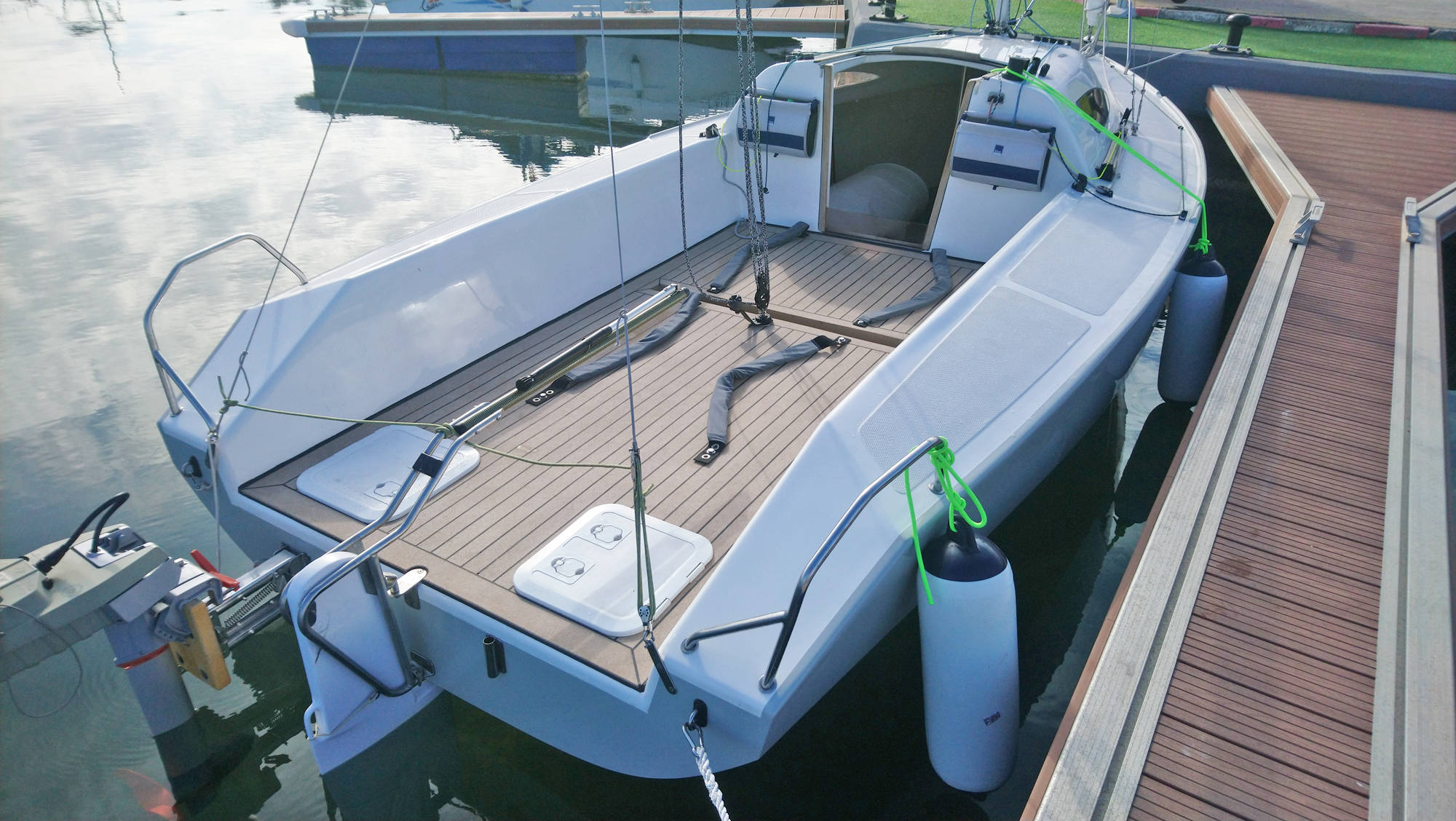 We have been working on the XP-19 project for 3 years now, this year the first boat out of a form was completed and brought to Lake Dümmer. What can I say, it sails perfectly! It's no problem that the bow is a bit out of the water. The boat just sails great, it accelerates well, runs a good height, is stable in the water .The steering is so light that even in a stiff breeze it can be controlled with two fingers, and also sails to windward very easily.